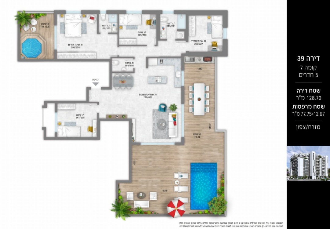 🏙️🌊 À vendre – Penthouse 5 pièces avec terrasses piscinables – Programme résidentiel à Bat Yam 🌊🏙️