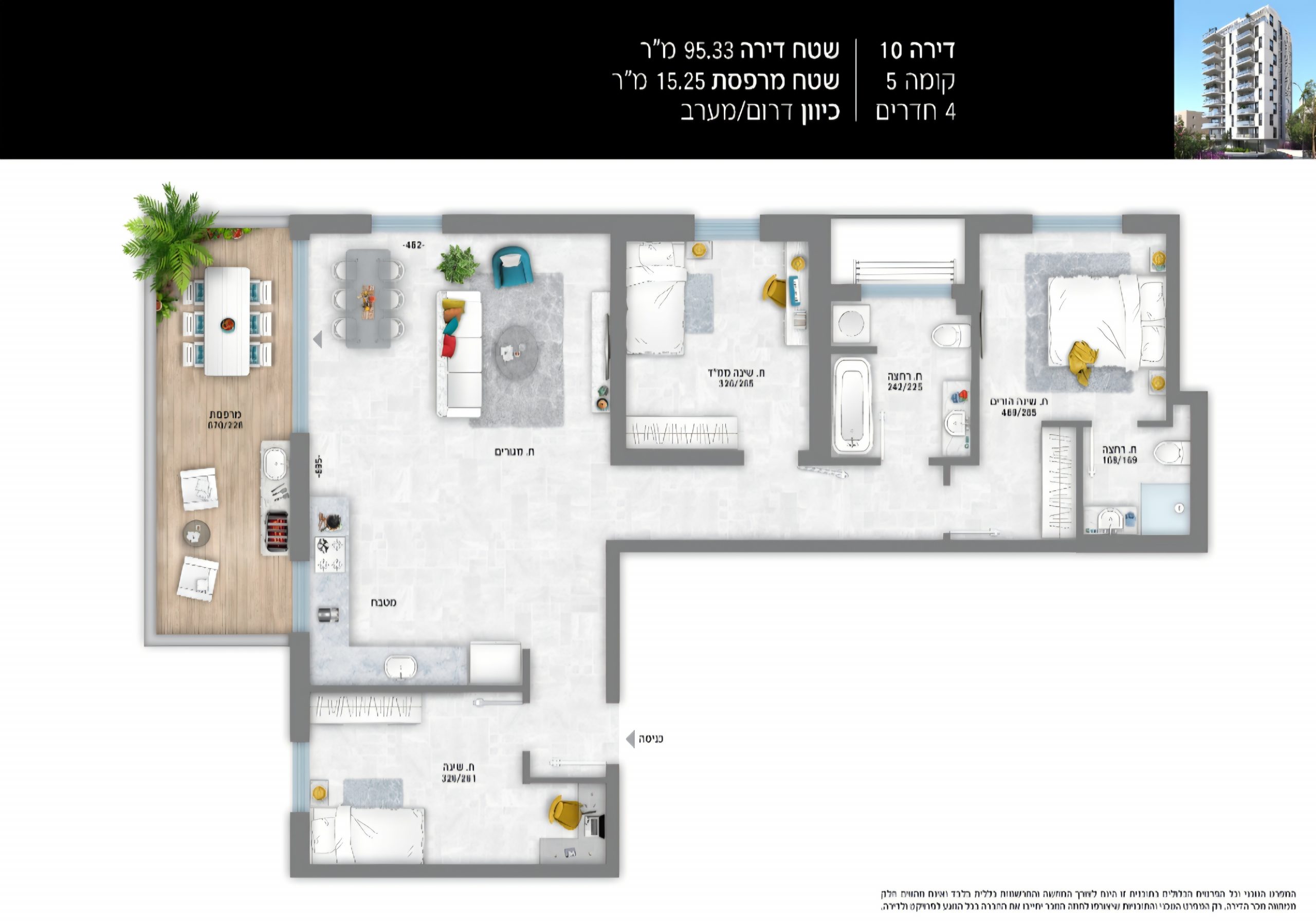 95 m² 15 m² 5 3 850 000 ₪