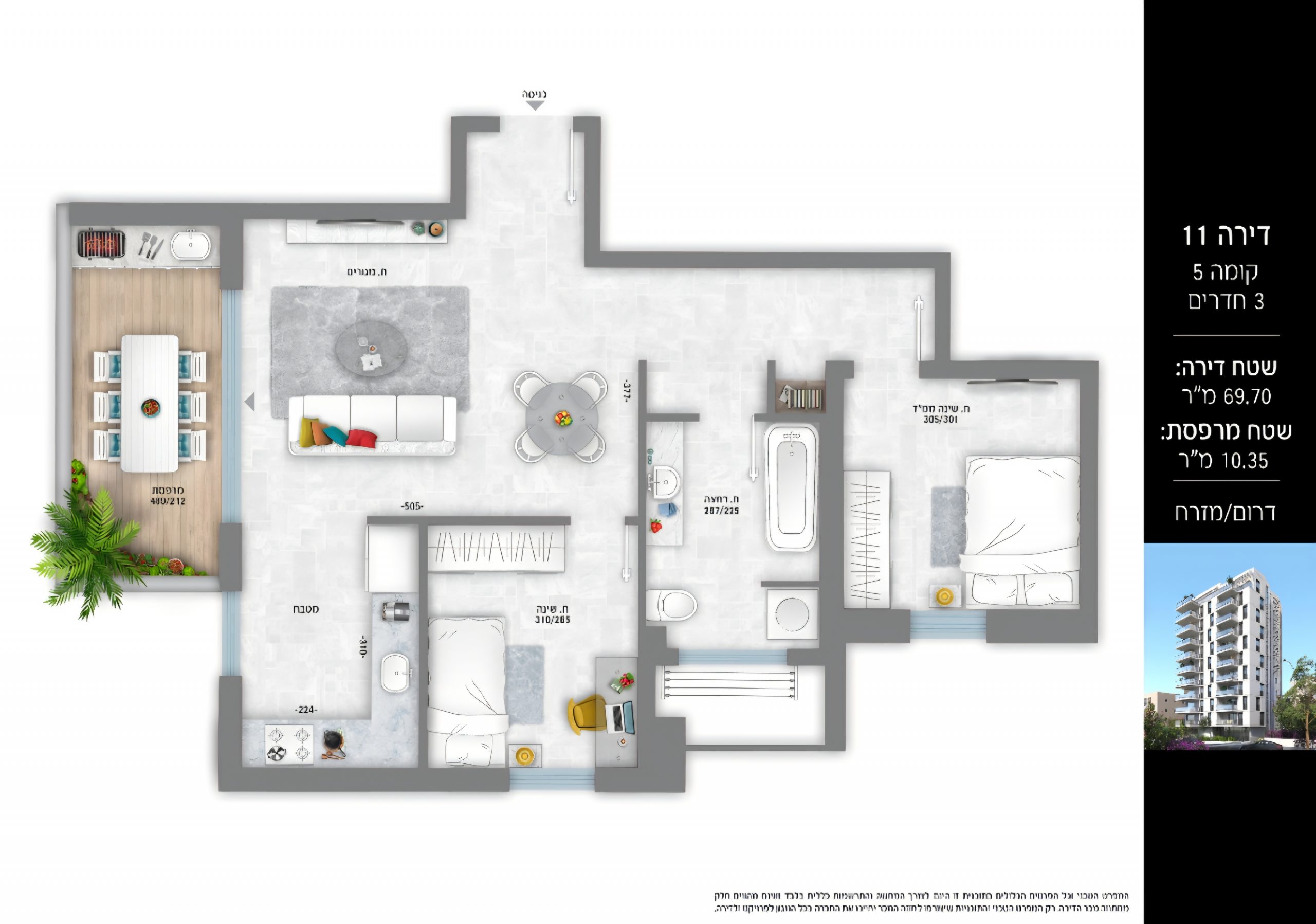 69.70 m² 10.35 m² 5 2 800 000 ₪