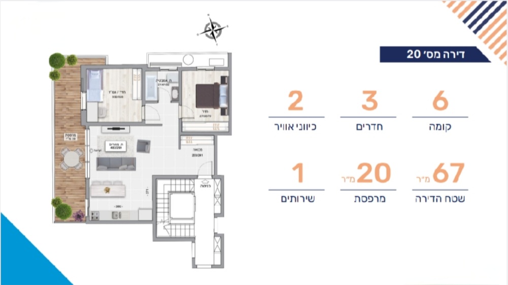 | 67 m² | 20 m² | 6 | 2 400 000 ₪ |