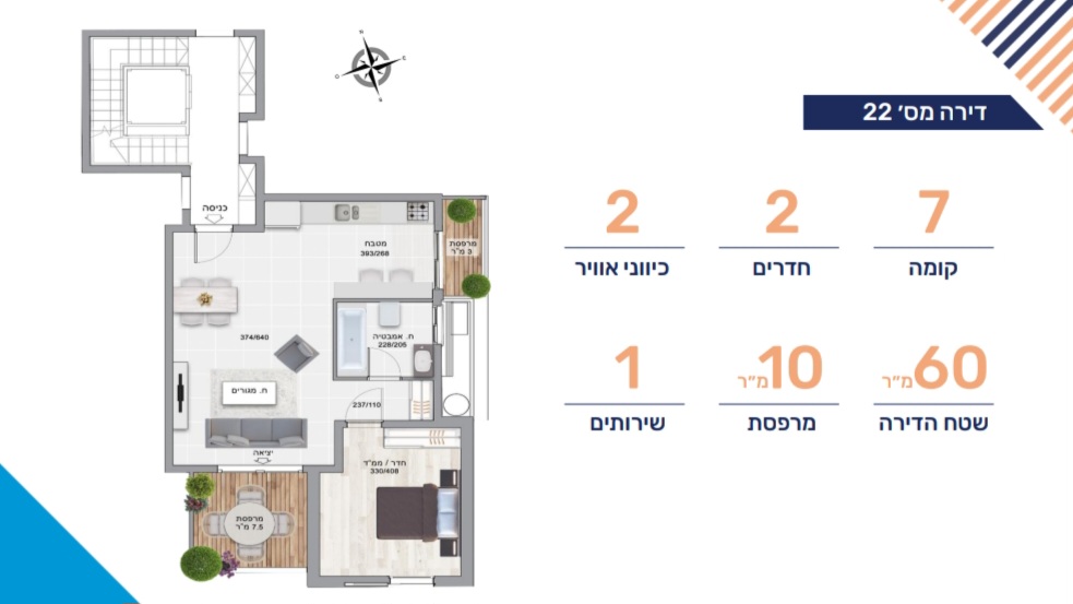 | 60 m² | 10 m² | 7 | 2 250 000 ₪ |